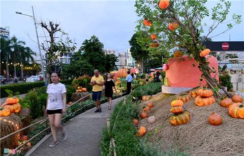 | Vào ban đêm, chúng được thắp sáng bằng đèn điện, nên lung linh hơn. Bí ngô được biết đến với biểu tượng không thể thiếu của lễ hội Halloween ở các nước phương Tây dịp cuối tháng 10 hàng năm. |